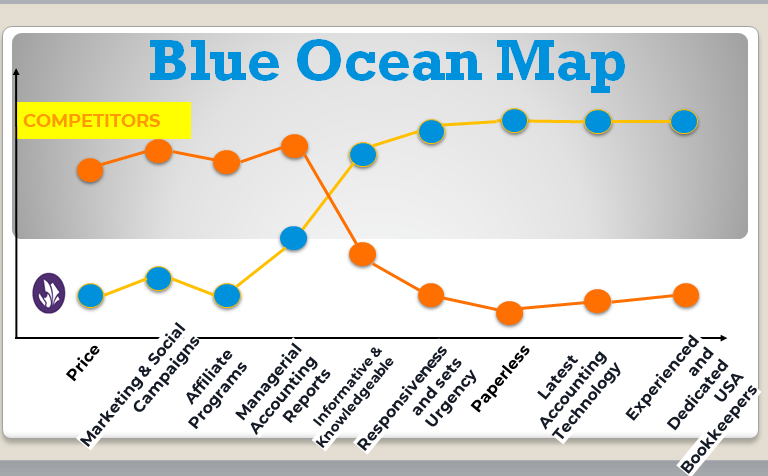 At Amazigra, our dedicated team not only crafted a robust Blue Ocean Strategy but also diligently oversaw its execution. We employed various metrics to ensure its success. The following list summarizes the key focus areas of our strategy for a bookkeeping services provider based in Oregon, USA.